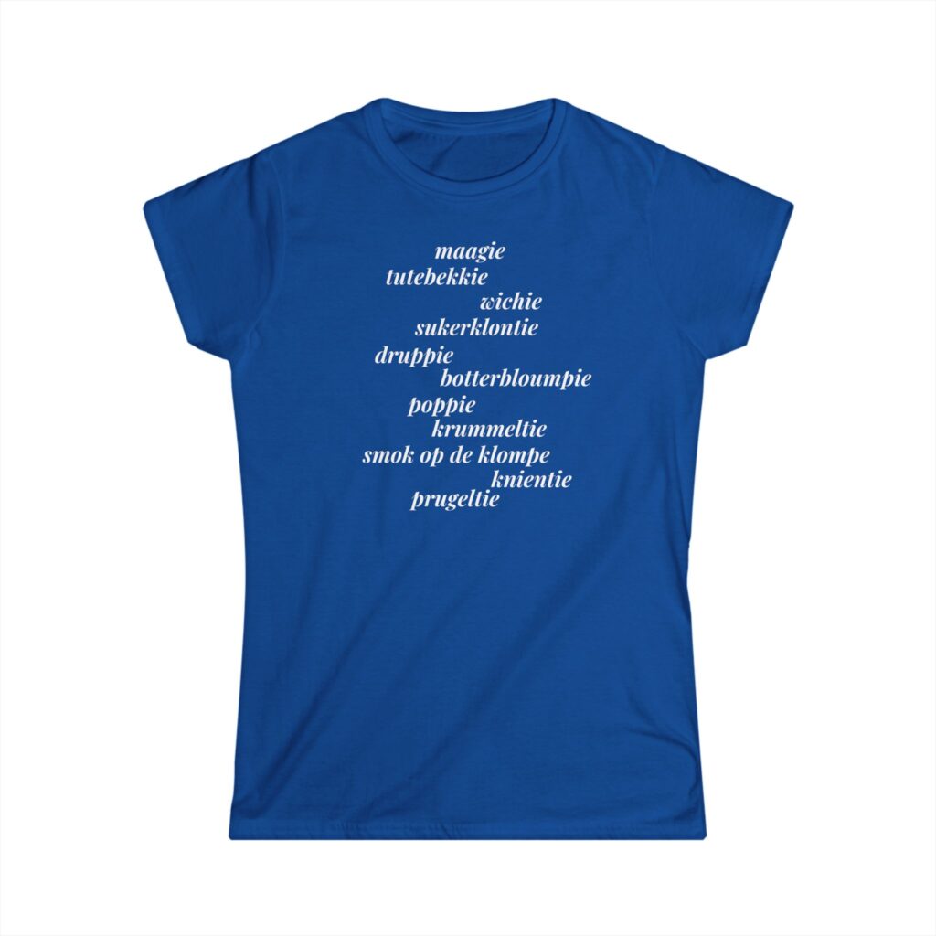Dit dames T-shirt is een mooi kedogie veur iene die wal wat lieve woordties weerd is.
