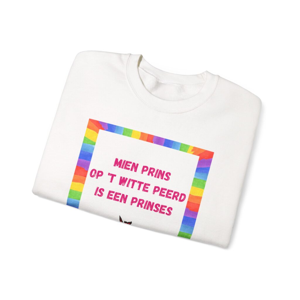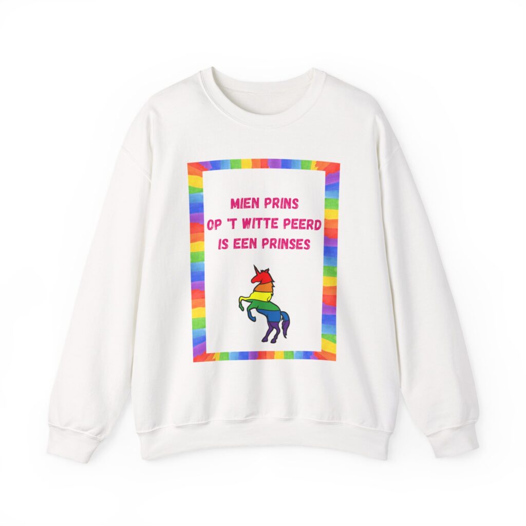 Woj aandern weten laoten daj op zuuk bint naor een prinses op het witte peerd? Met dizze trui an huuj zölf niks meer oet te leggen.