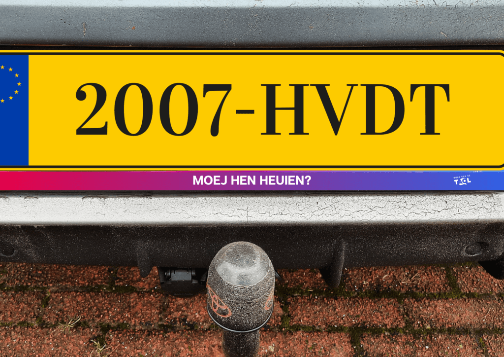 Met dizze kentekenplaatsticker wordt er vast meer naor je lachen underweg.