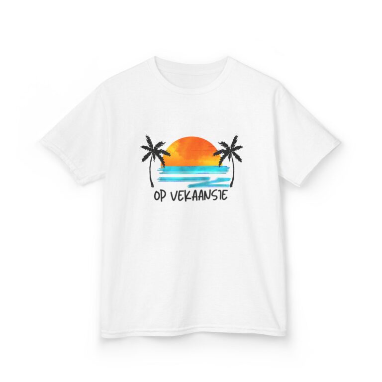 Vrolijk kinder t-shirt met de tekst ‘Op vekaansie’