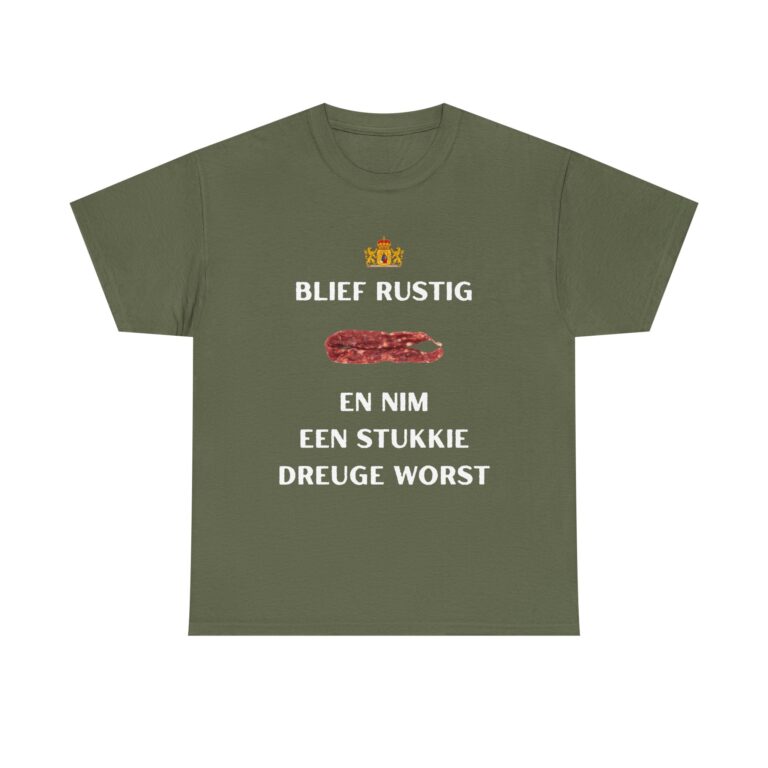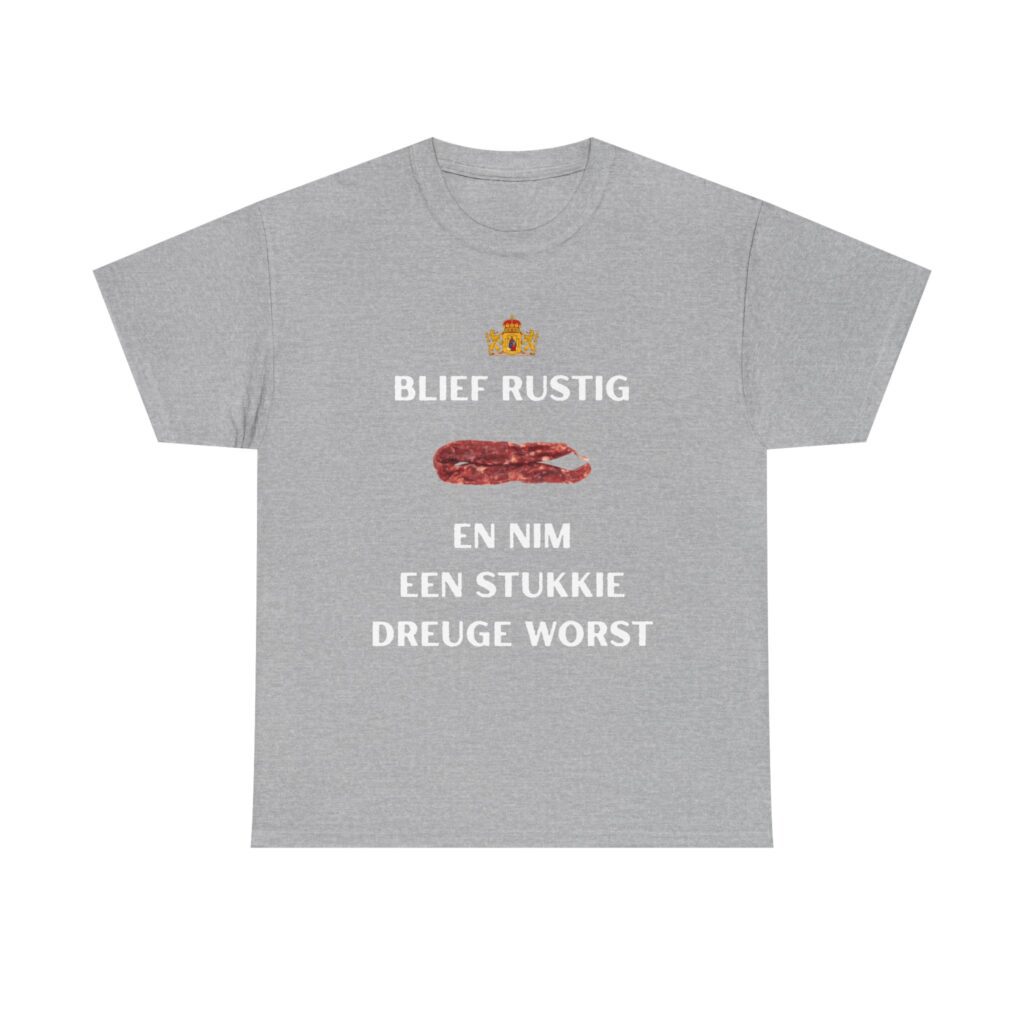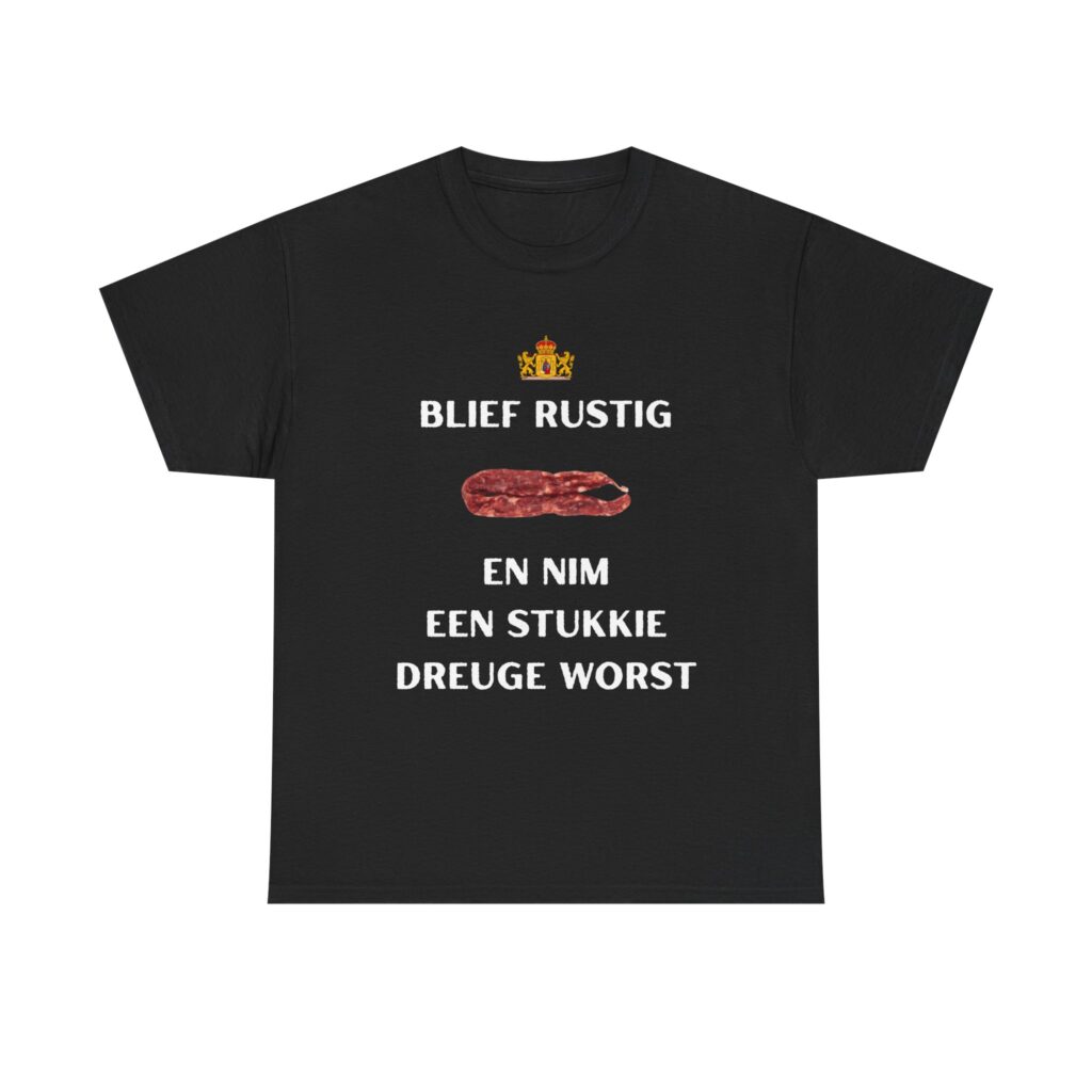 T-shirt ‘Blief rustig en nim een stukkie dreuge worst’