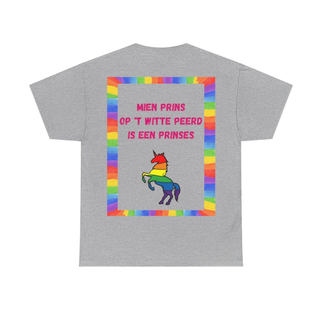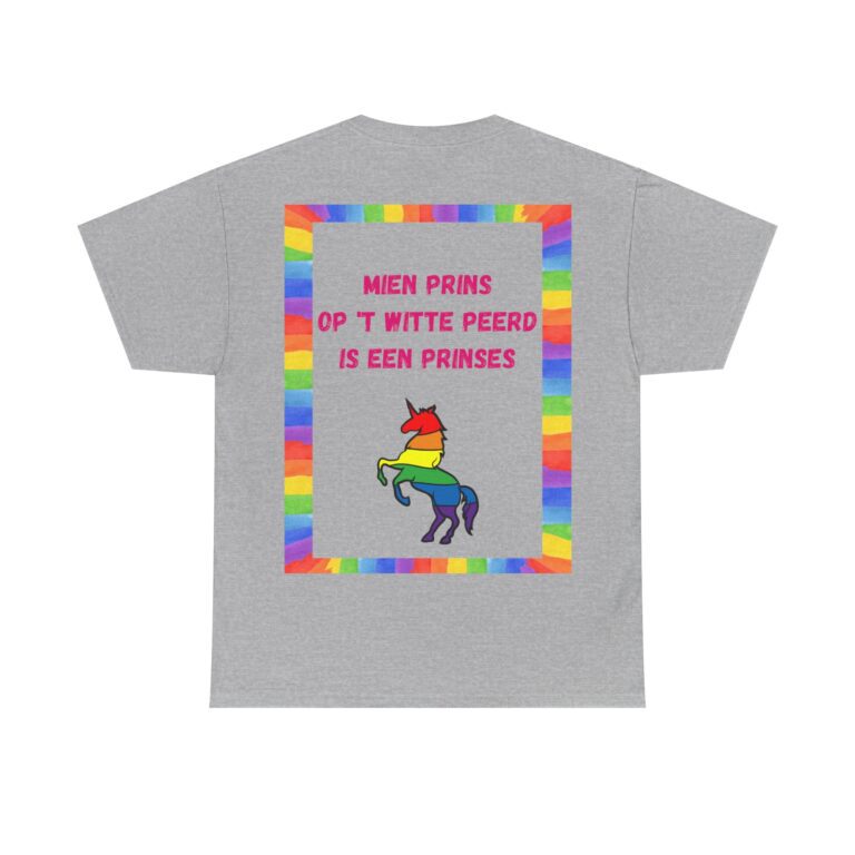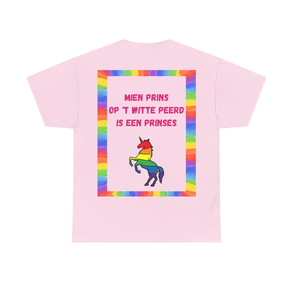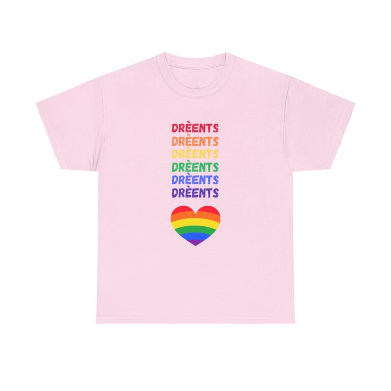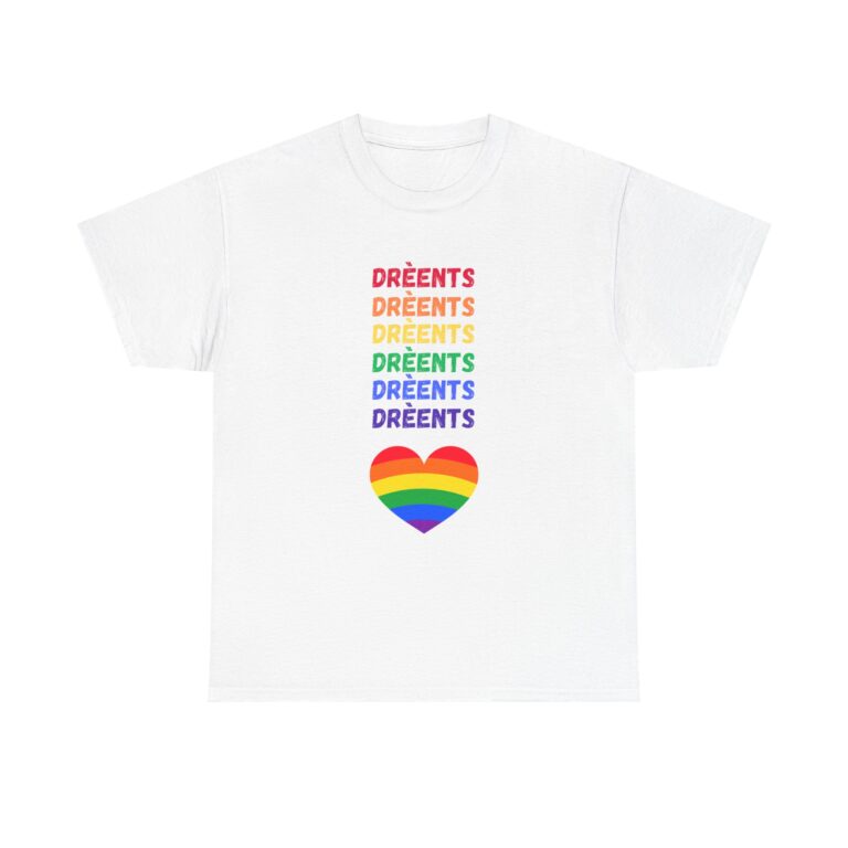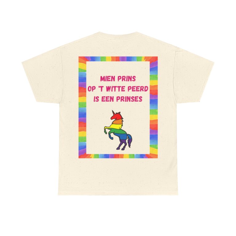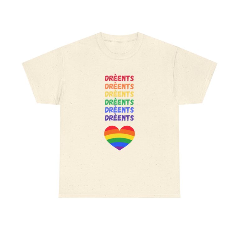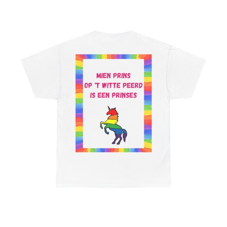 Vier wie aj bint of wie aj leuk vindt met dit Drèentse regenboogshirt veur vrouwlu. Kleurriek, stoer en met een knipoog op de achterkaant.