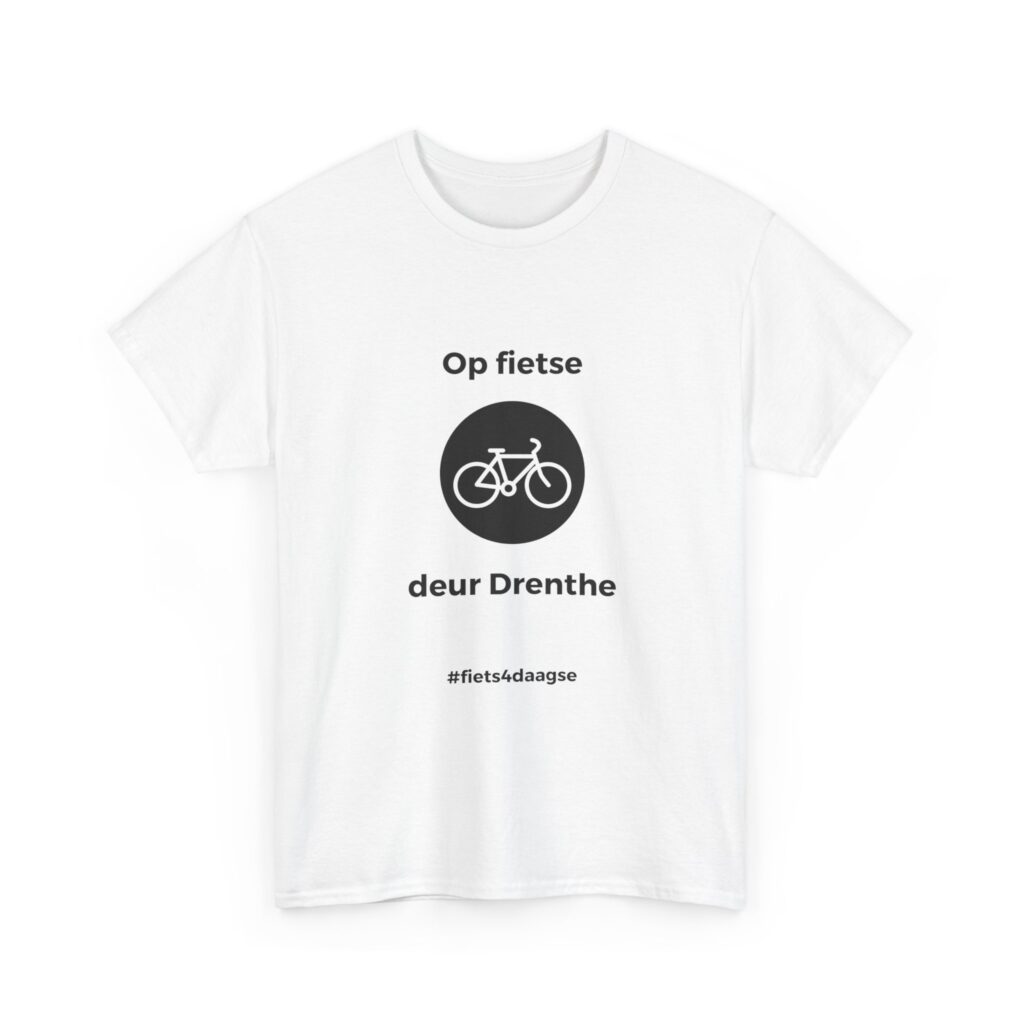 Stap ie dizze zummer weer op de fiets um de Fiets4Daagse te rieden? Met dit unisex T-shirt van zwaor ketoen kuj geliek zien laoten waor aj veur komt!