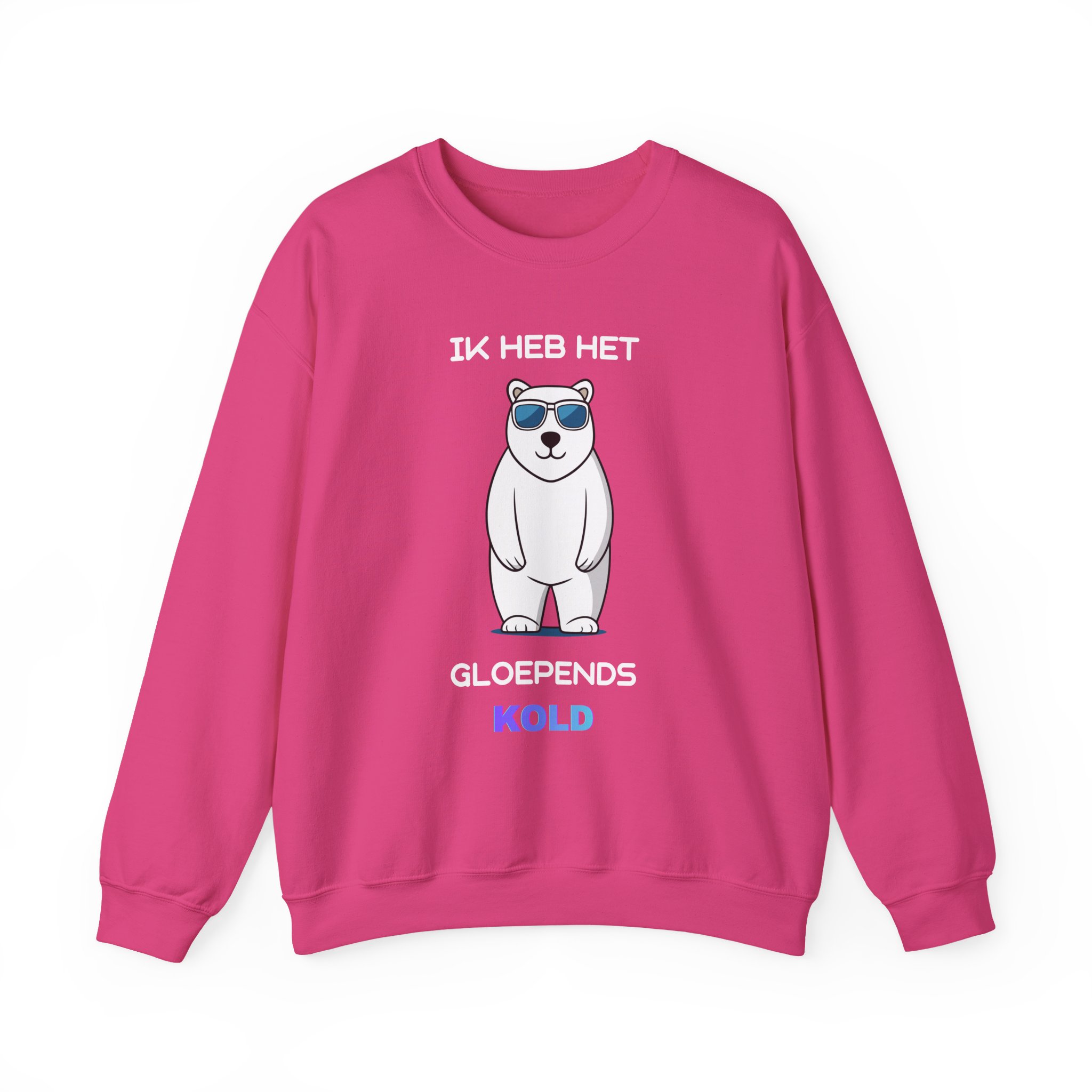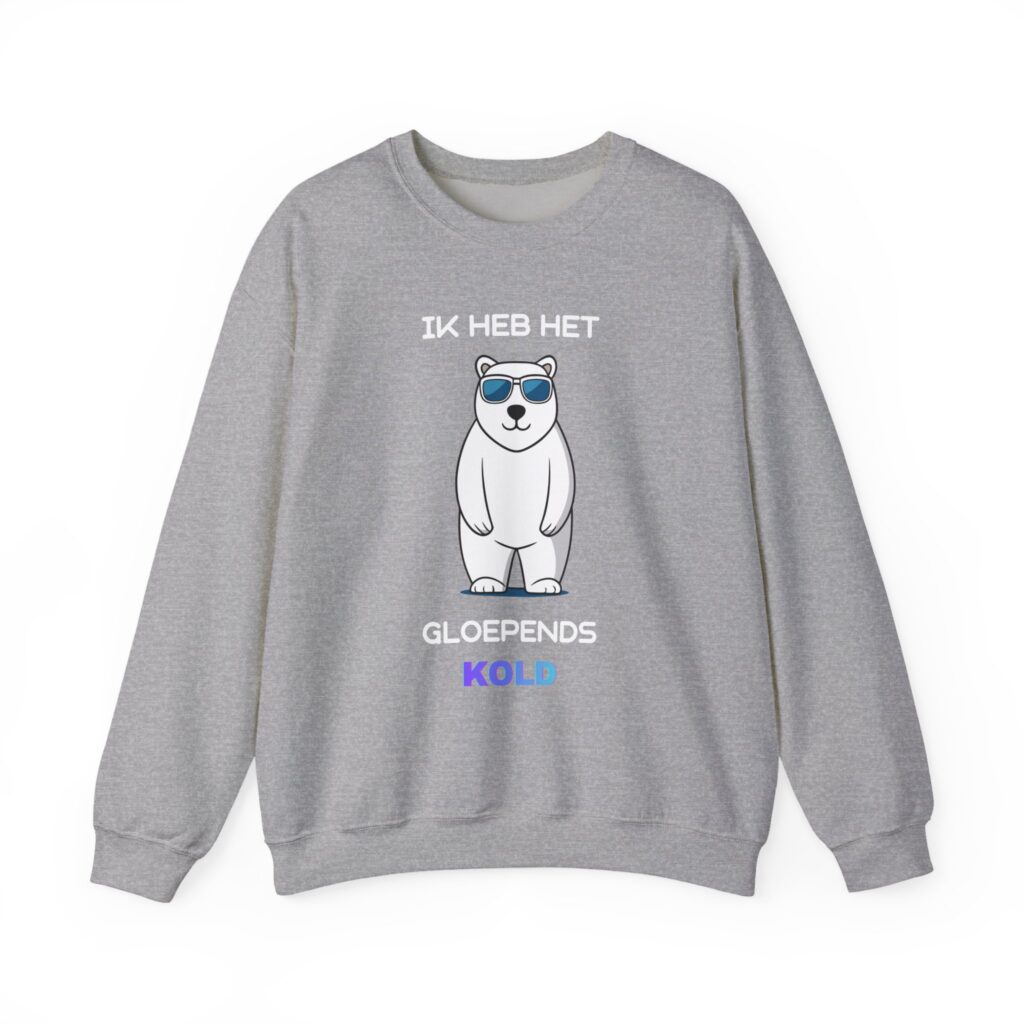 Met dizze trui an bliej lekker warm. Maor misschien as aandern de tekst ‘Ik heb het gloepends kold’ ziet, biedt ze je wal een kop warme sukelao an. Of geeft ze je een knuffel. Ie weet maor nooit wat je gebeuren kan aj dizze trui antrekt!